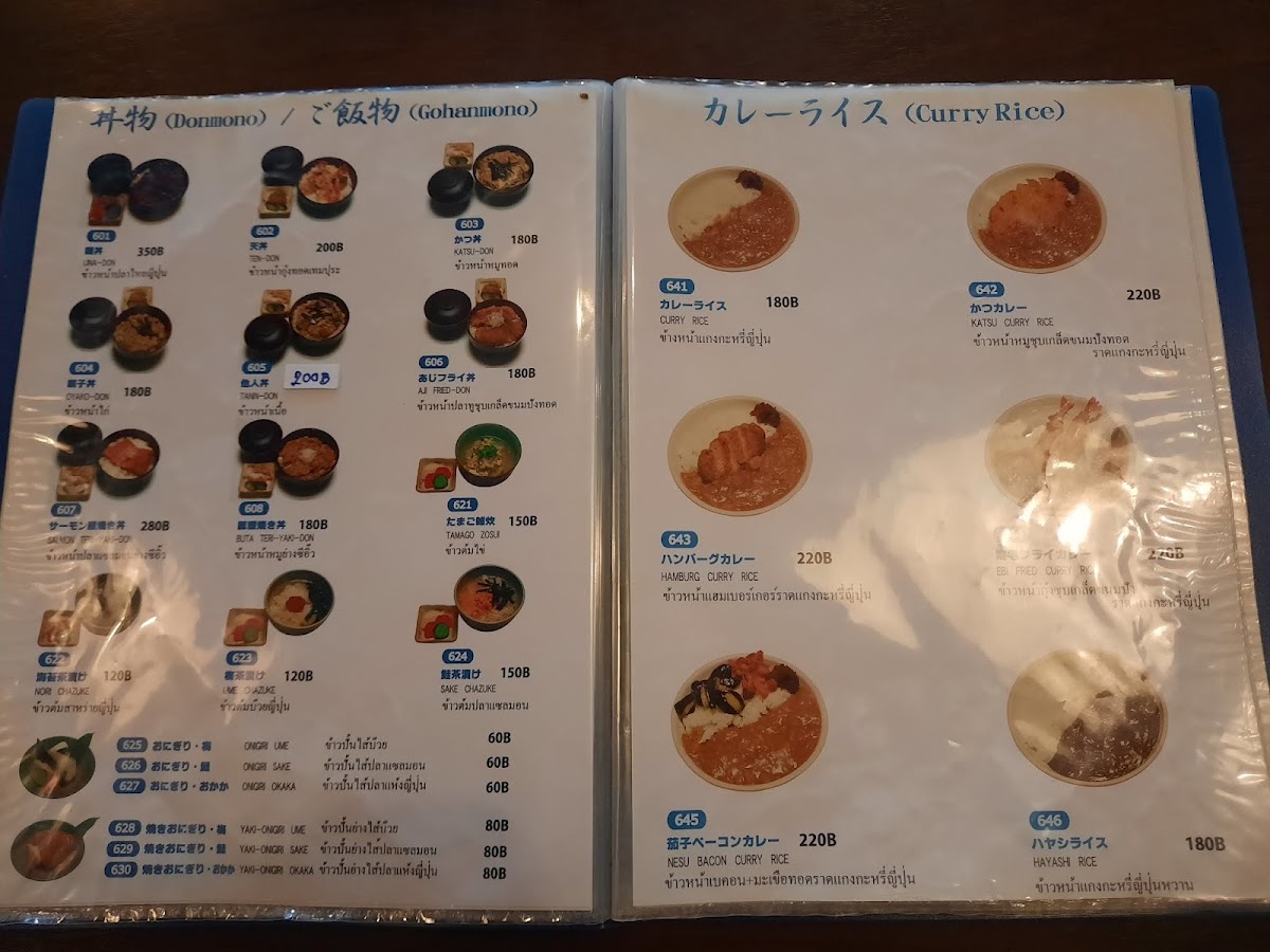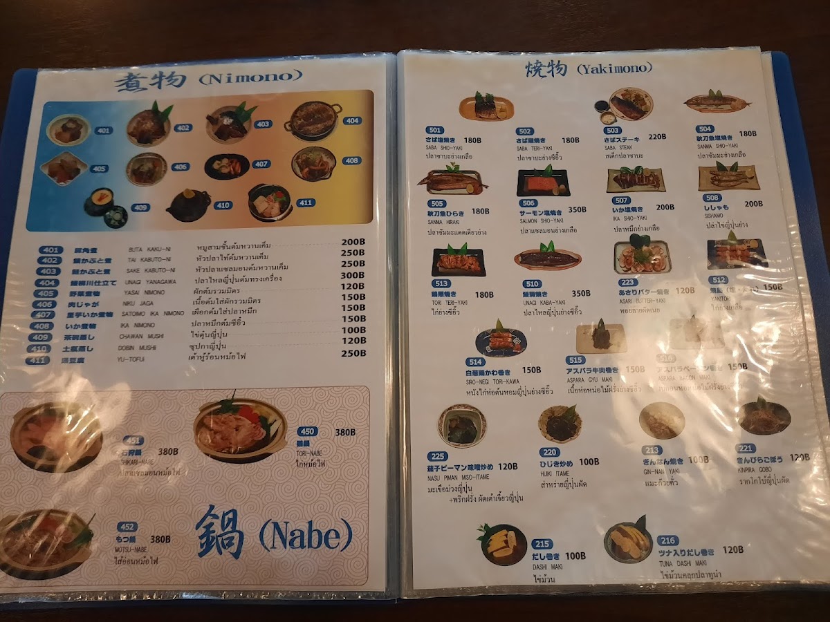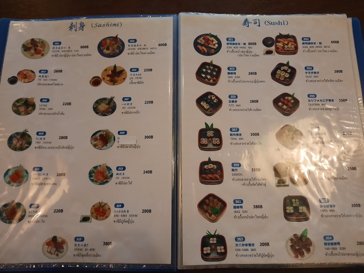 Menu: Varied offerings from sushi to traditional Japanese dishes.
